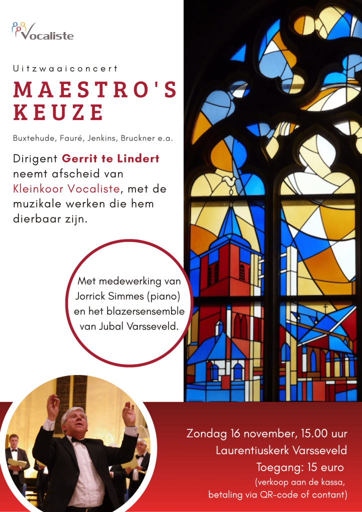 Dirigent Gerrit te Lindert neemt eind 2025 afscheid van Vocaliste. Voor het Uitzwaaiconcert van 16 november zocht hij werken uit die hem dierbaar zijn.